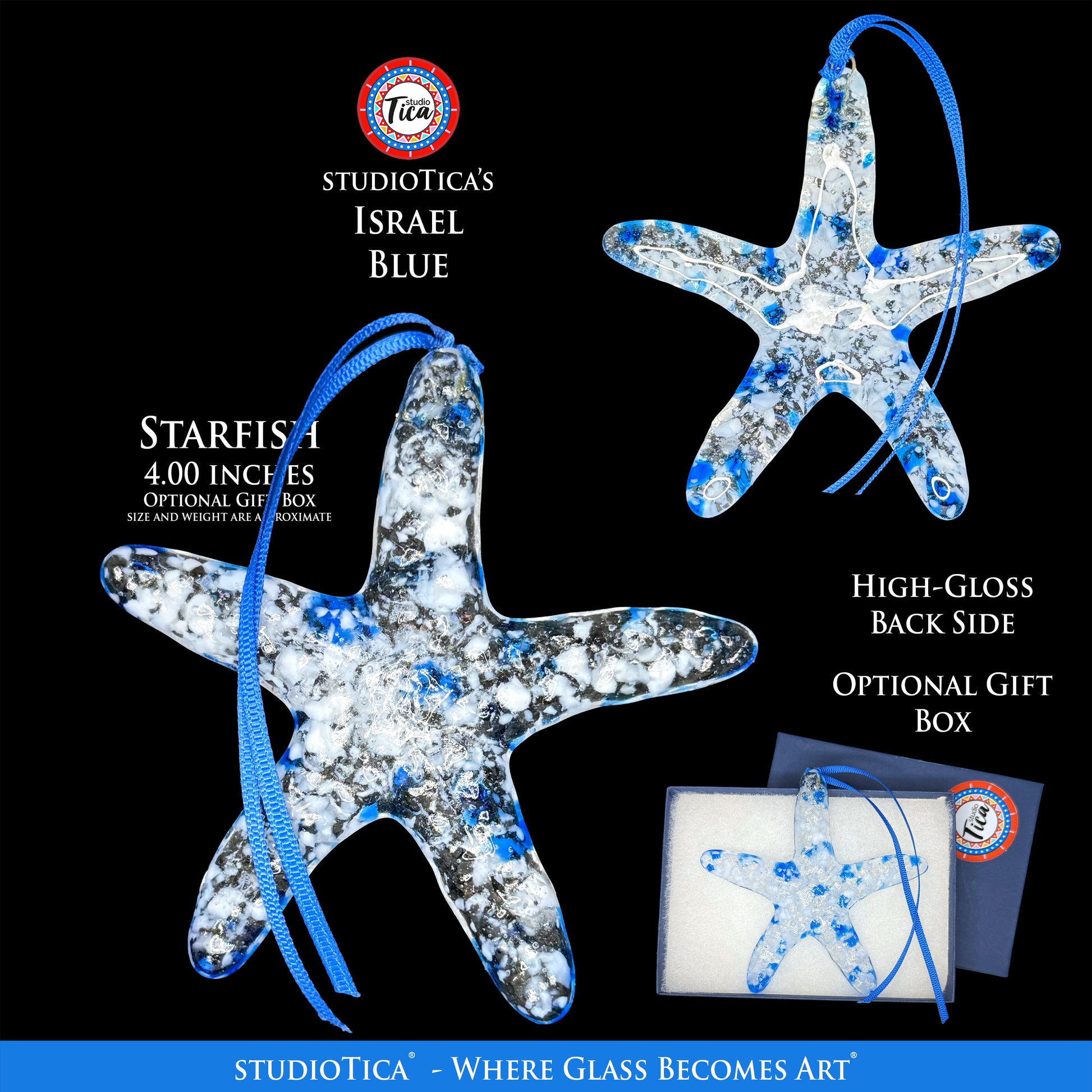 Unleash your inner nature lover with our Starfish Blues Collection of Starfish! Each purchase includes a beautifully handcrafted glass ornament, paperweight, or suncatcher, made right here in the USA. Measuring approximately 4.00 inches across, it gently rises above the flat surface. These pieces will add a touch of whimsy to any space. With its optional hanging hook, you can choose to use it indoors or outdoors, or even in your aquarium. And don't forget, each starfish is lead-free and handmade, ensuring a unique and one-of-a-kind addition to your home.
