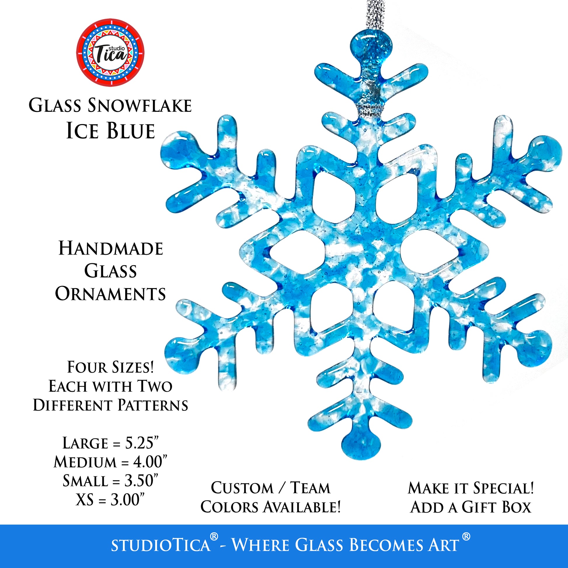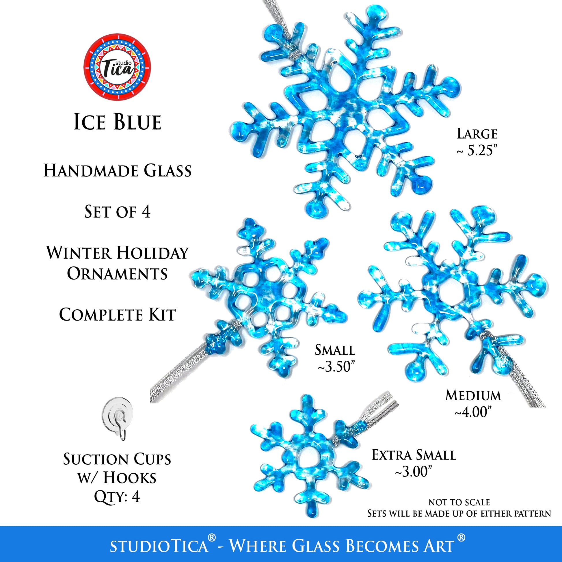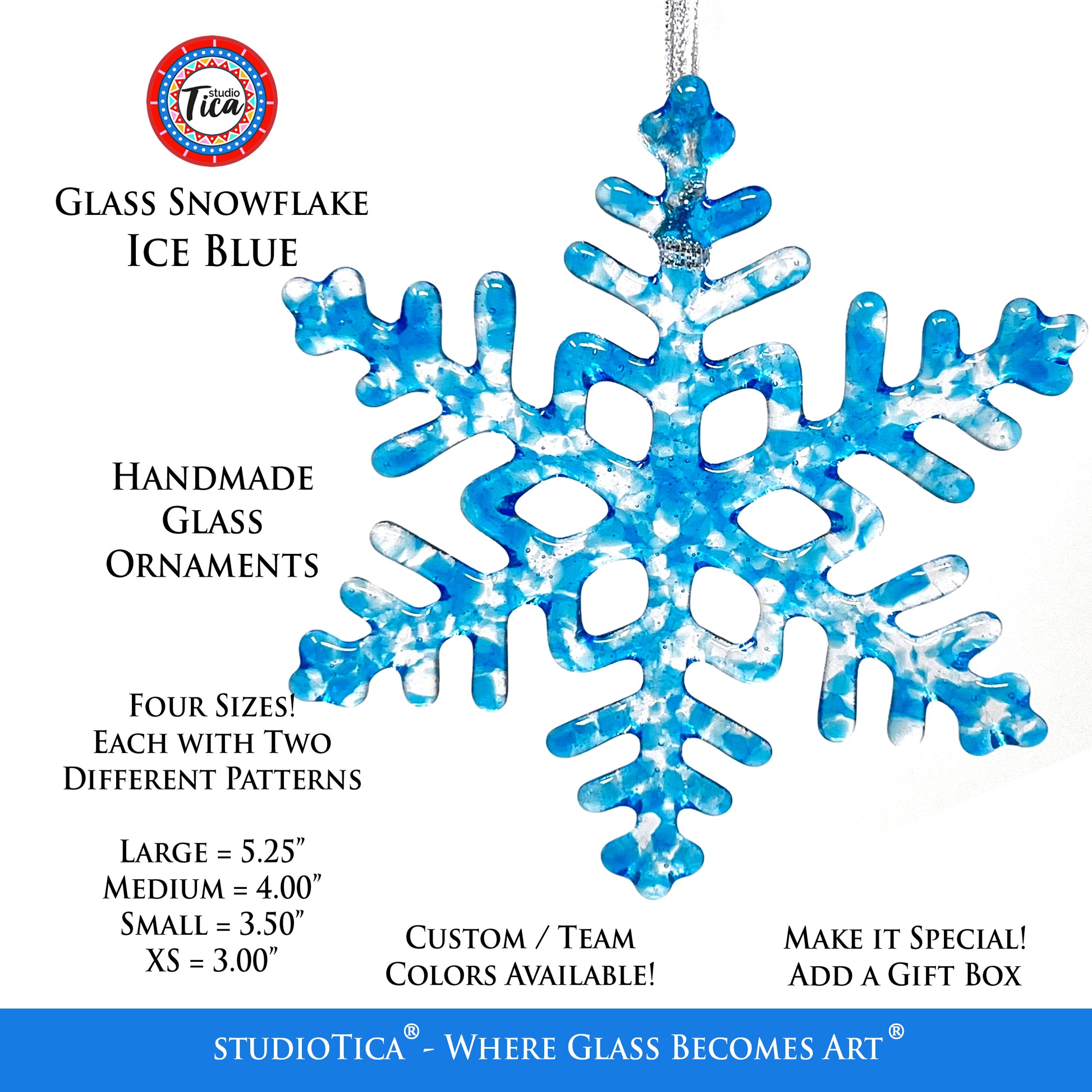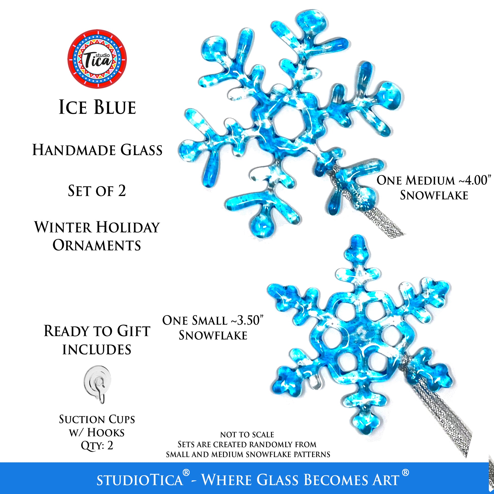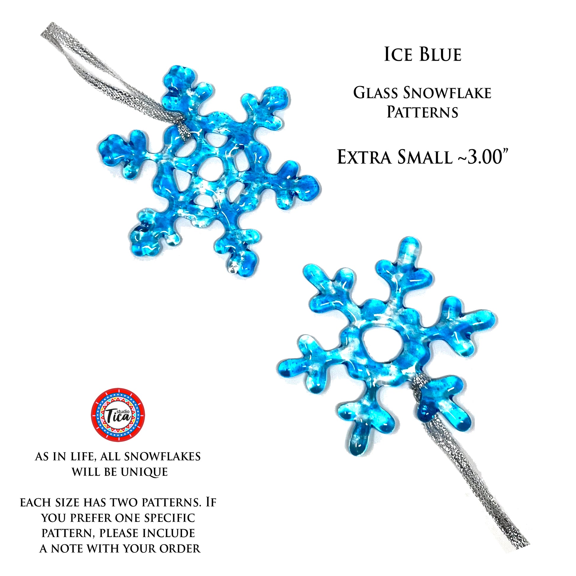 Size & Lengths: I currently offer FOUR SIZES and each size comes in TWO DESIGNS. Like real snowflakes, each one is unique and will vary slightly (size, color) from the photographs.
