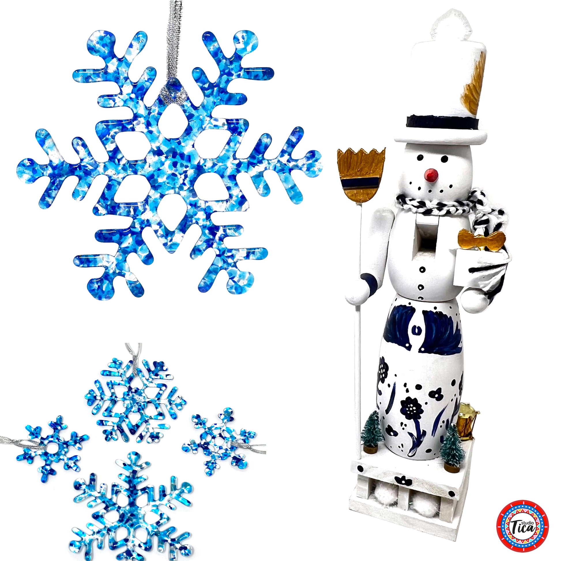 Pattern: The Glass Snowflake is made with the same glass as my extremely popular Ocean Blue swizzle sticks and combined with crystal-clear glass, which together create a unique and magnificently sparkling holiday ornament. An ornament which will make your home, windows, or Christmas tree dazzle and last a lifetime.